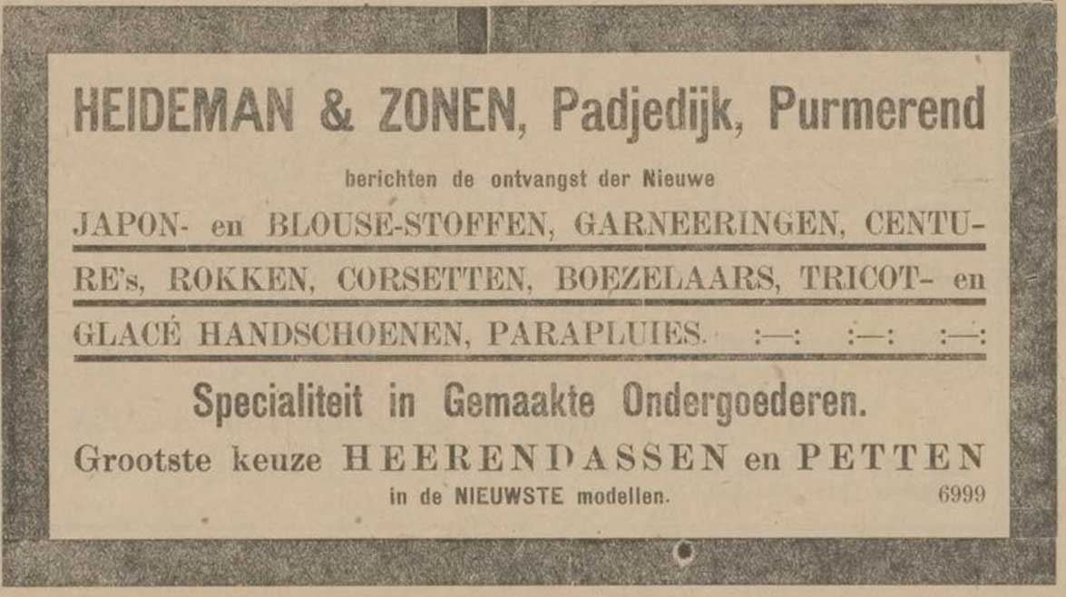 5. Johannes Henricus Heideman, geboren Purmerend 29 juli 1915, manefacturier (nam de winkel over van zijn vader op Padjedijk 9 te Purmerend), overleden Purmerend 12 januari 2001.