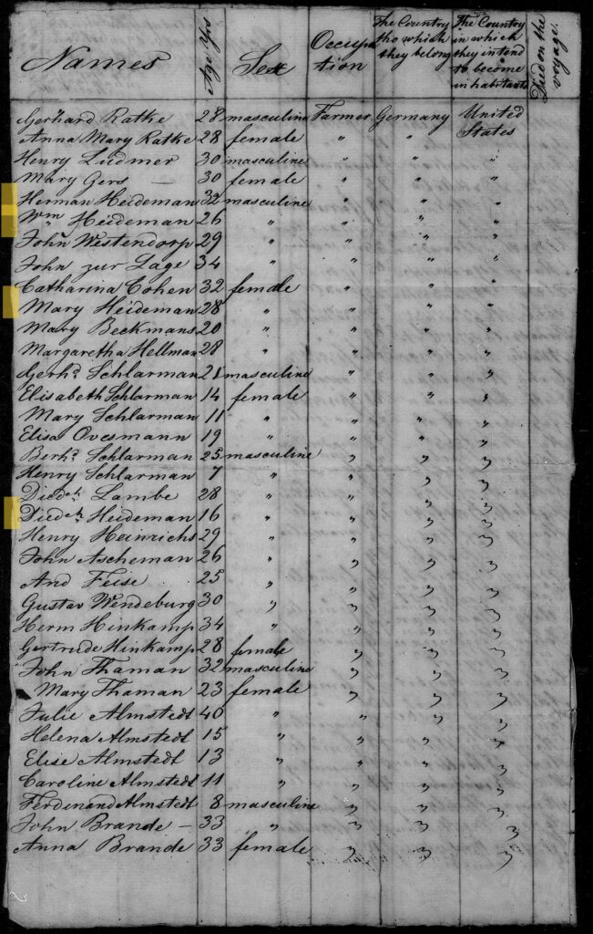 1. Herman Heinrich Anton Heidemann, emigreerde naar USA in 1839, stamvader USA tak 1, volgt VIa.